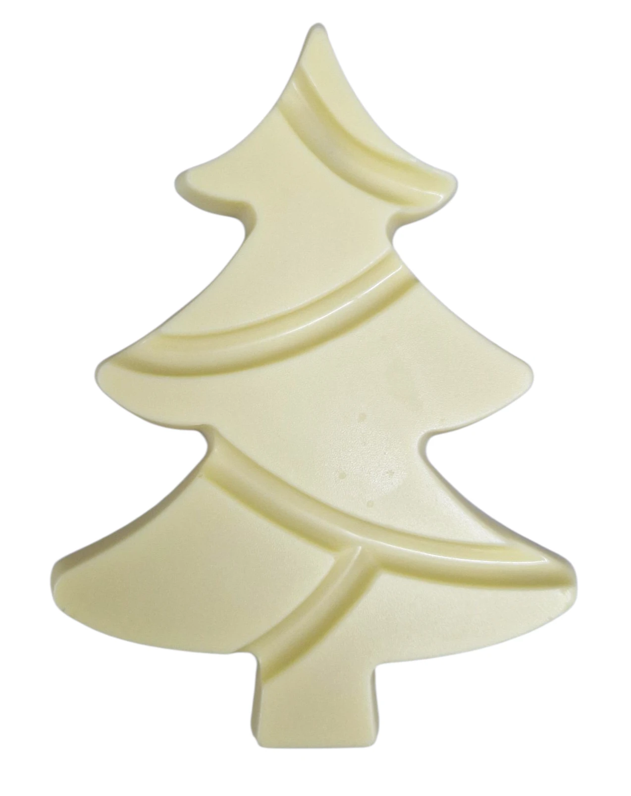 Piękna świąteczna choinka z białej czekolady ozdobiona kwaśną wiśnią i kawałkami pistacji. Idealna na prezent pod choinkę.