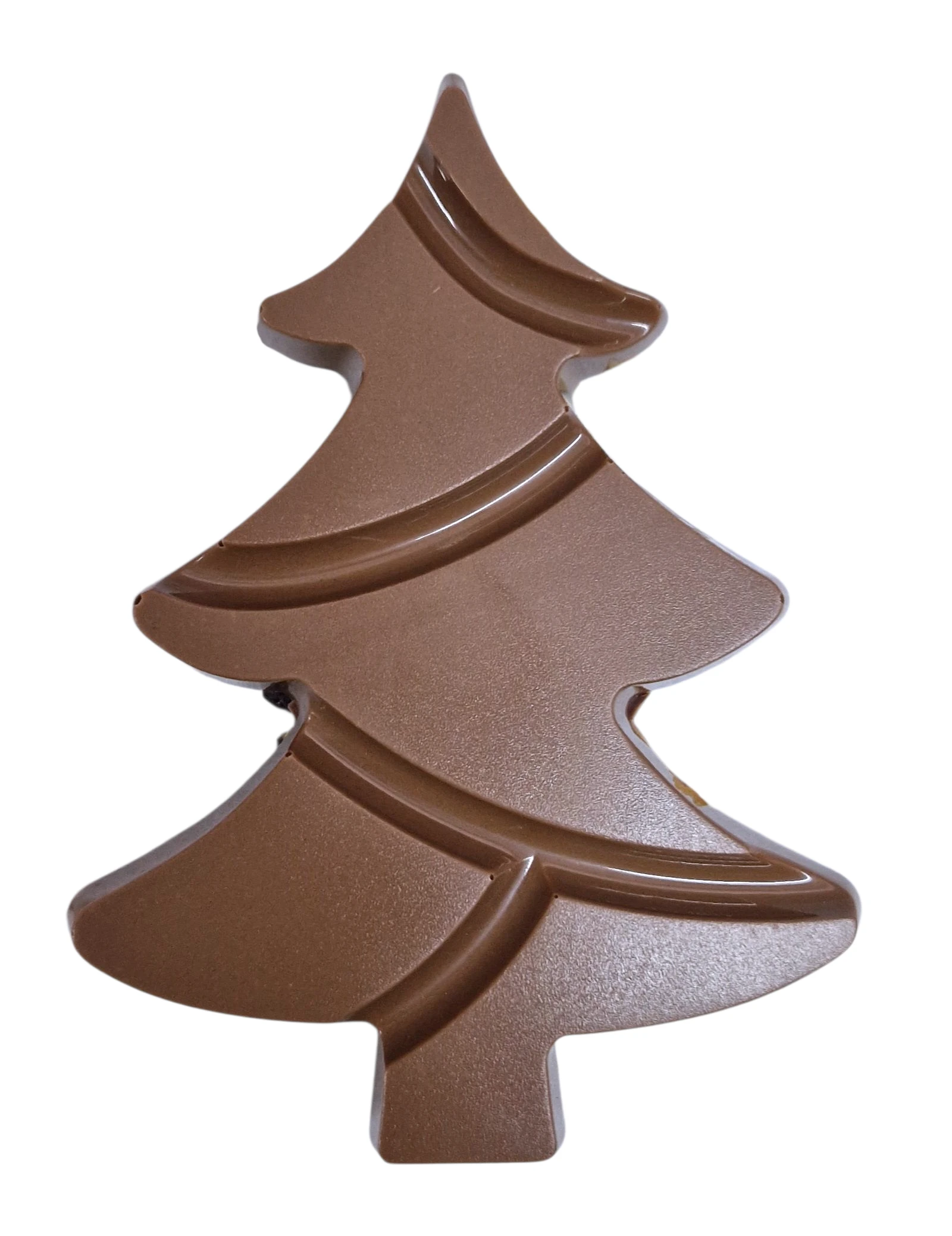 Piękna świąteczna choinka z mlecznej czekolady ozdobiona jabłkiem i śliwką. Idealna na prezent pod choinkę.