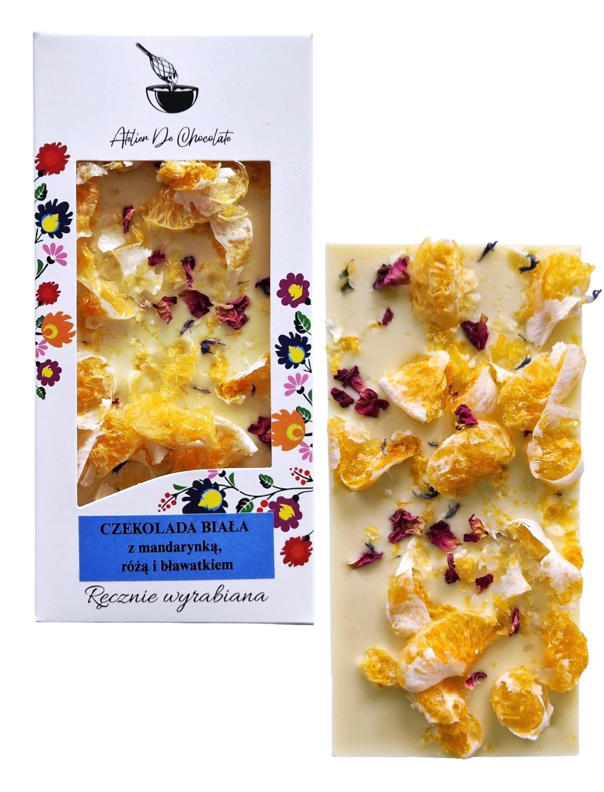 Czekolada biała z mandarynką, różą i bławatkiem
