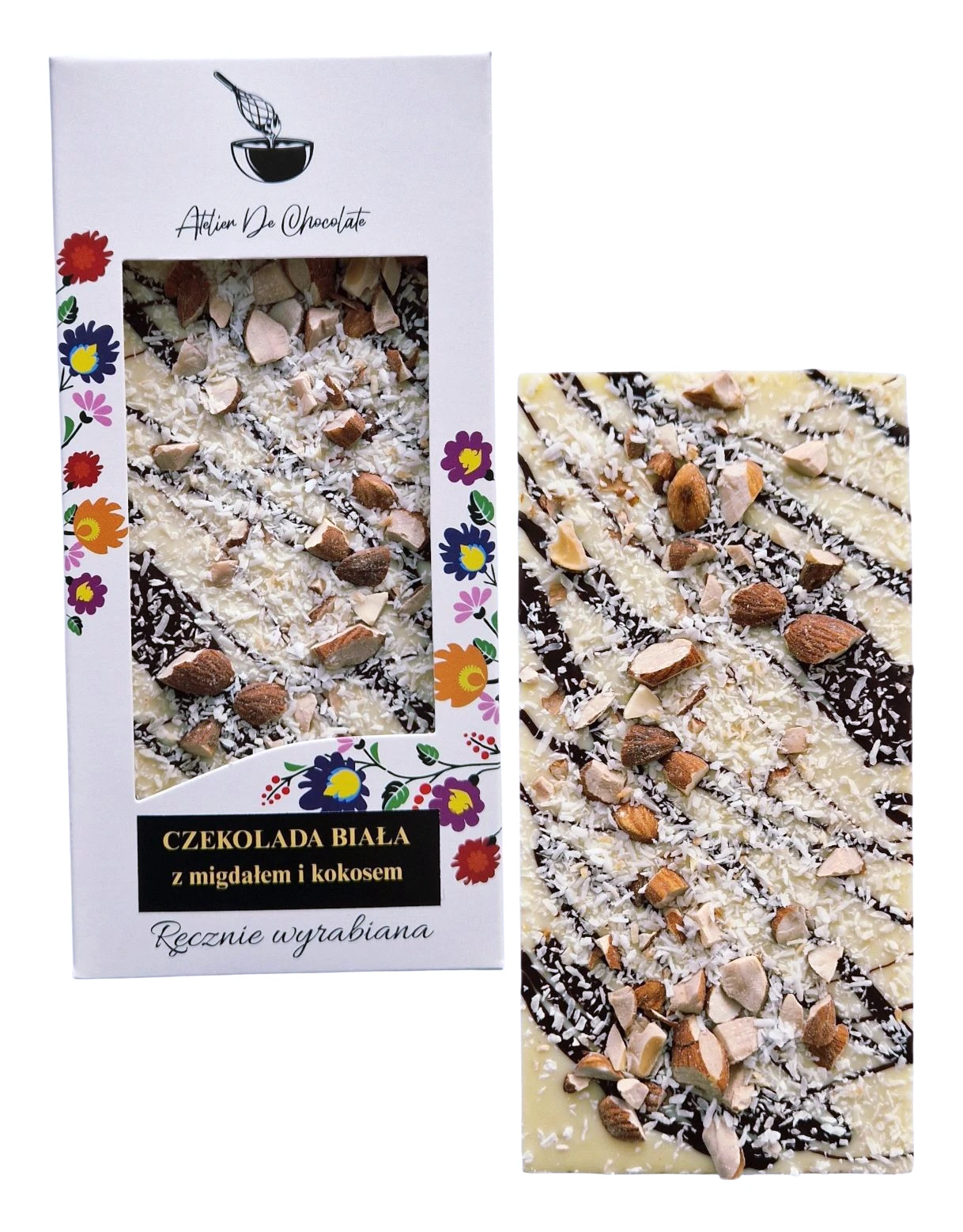 Smak raju w postaci aksamitnej białej czekolady skomponowanej z prażonym kokosem i migdałem. Zrównoważona słodkość czekolady.