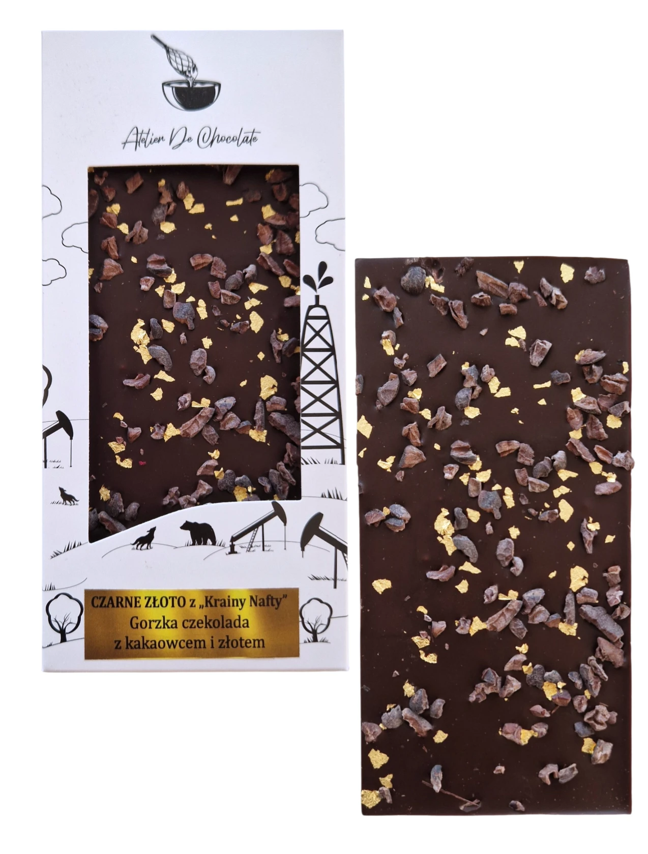 Czekolada gorzka powstała w Zagłębiu Nafty na Podkarpaciu, łącząc wyrafinowaną gorzką czekoladę z kruszcem prażonego ziarna kakao oraz prawdziwym jadalnym 23 karatowym złotem. Czekolada "czarne złoto z Krainy Nafty" została dedykowana pamięci Ignacego Łukasiewicza. Wynalazcy lampy naftowej i pioniera przemysłu naftowego. Współzałożyciela Pierwszej Kopalni Ropy Naftowej na świecie.