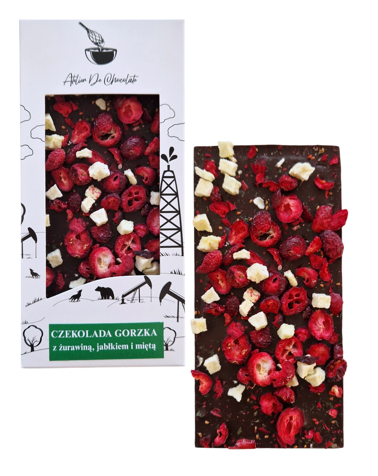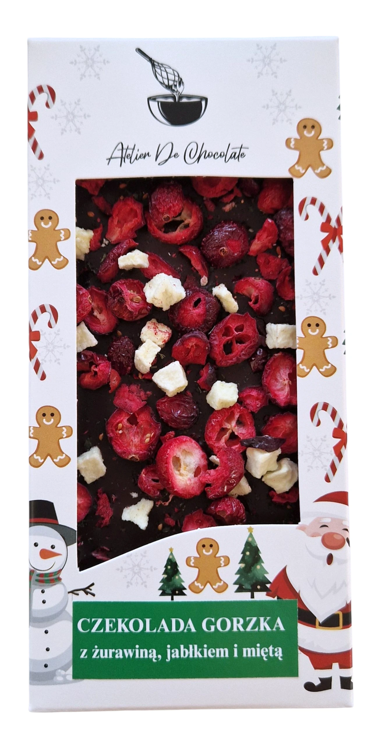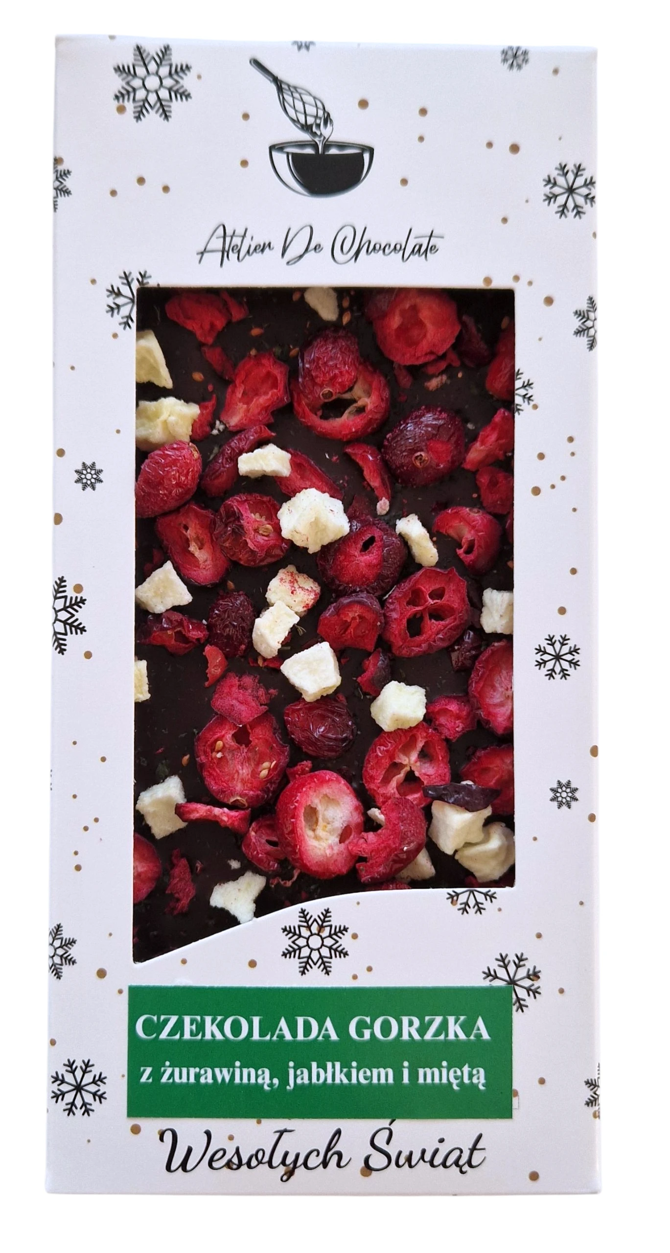 Czekolada gorzka z żurawiną, jabłkiem i miętą