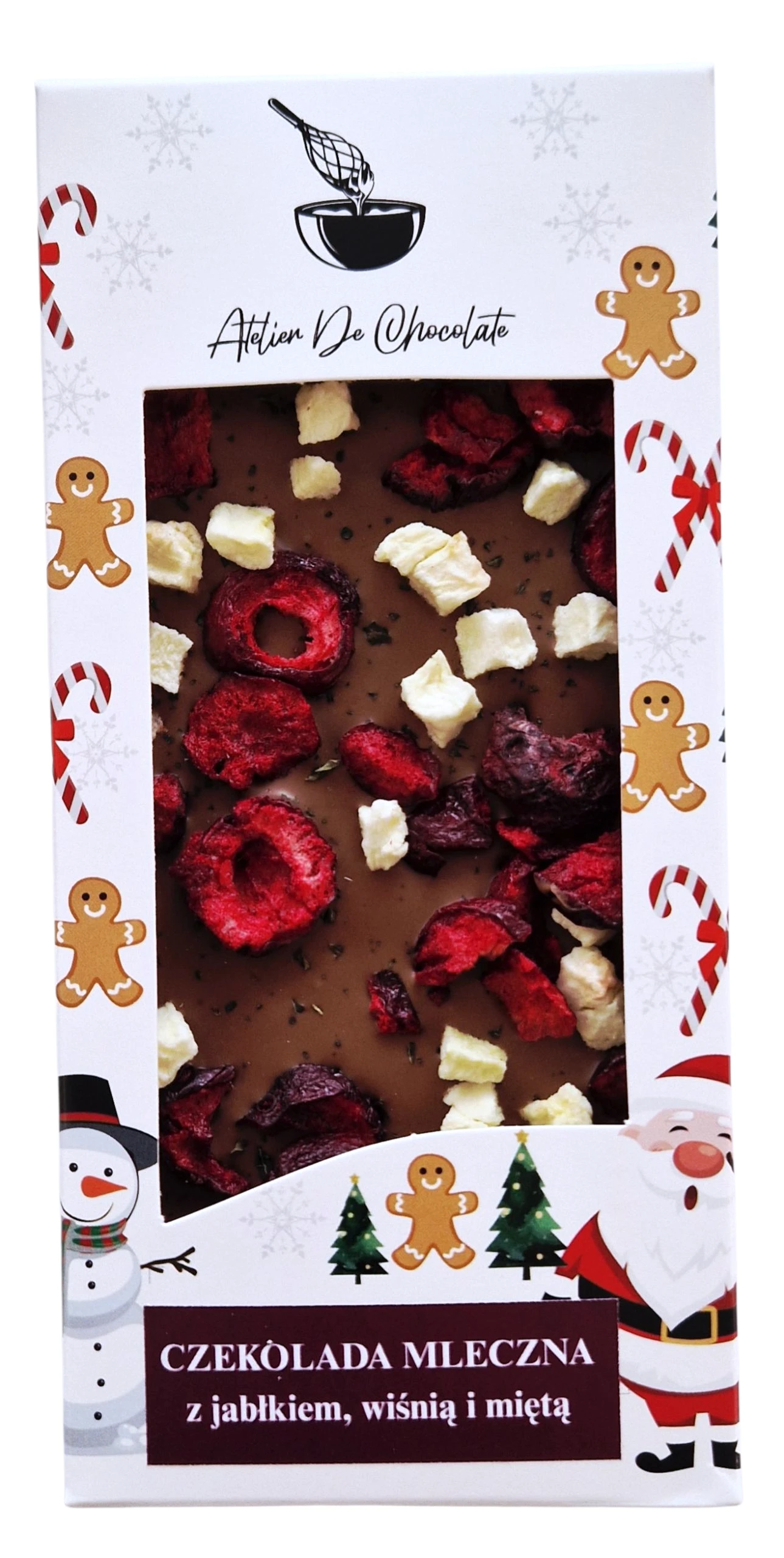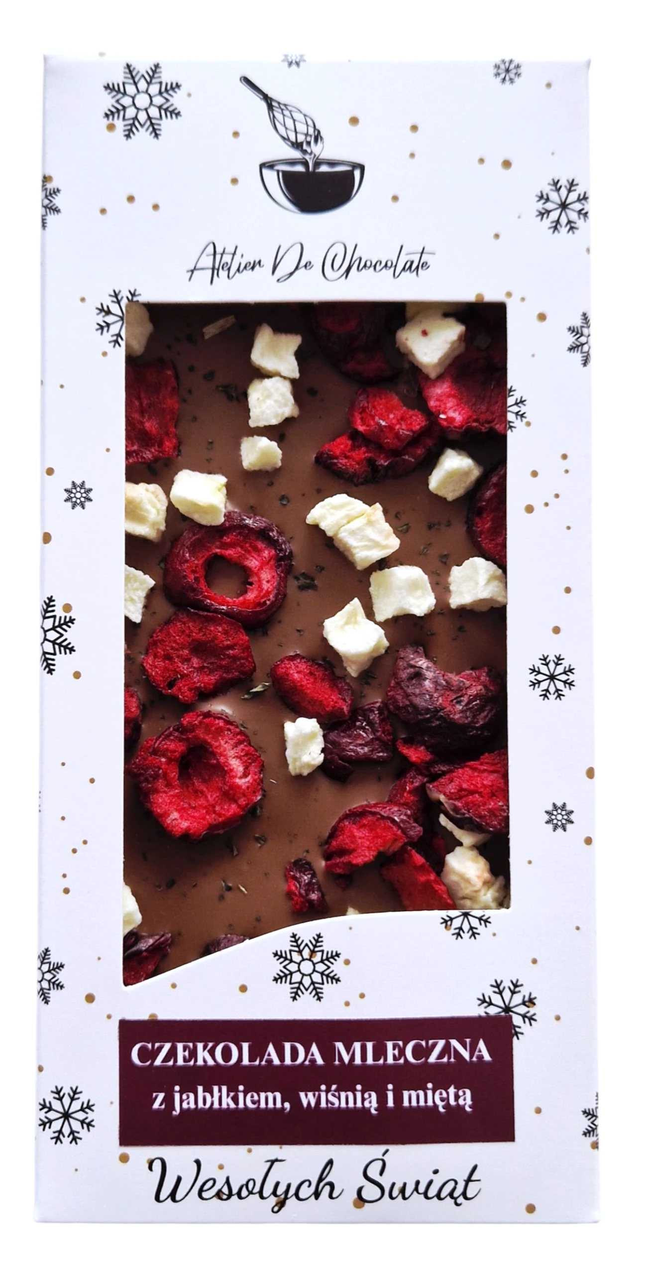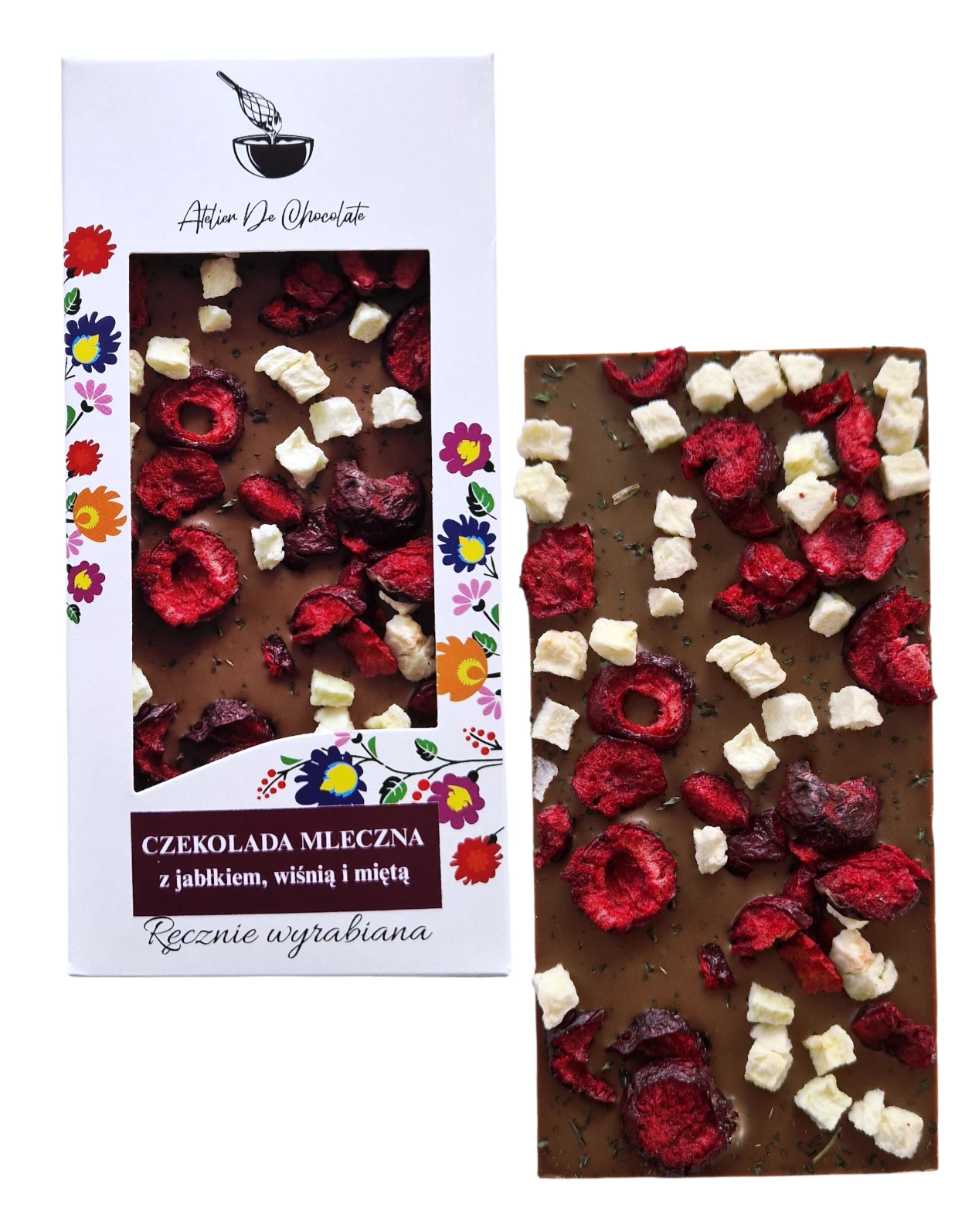 Czekolada mleczna z jabłkiem, wiśnią i miętą