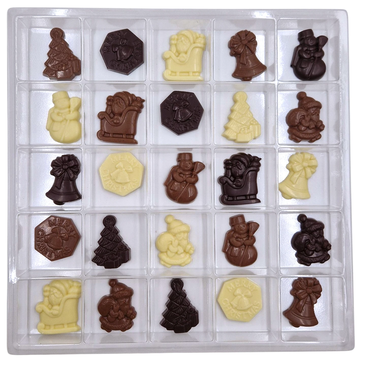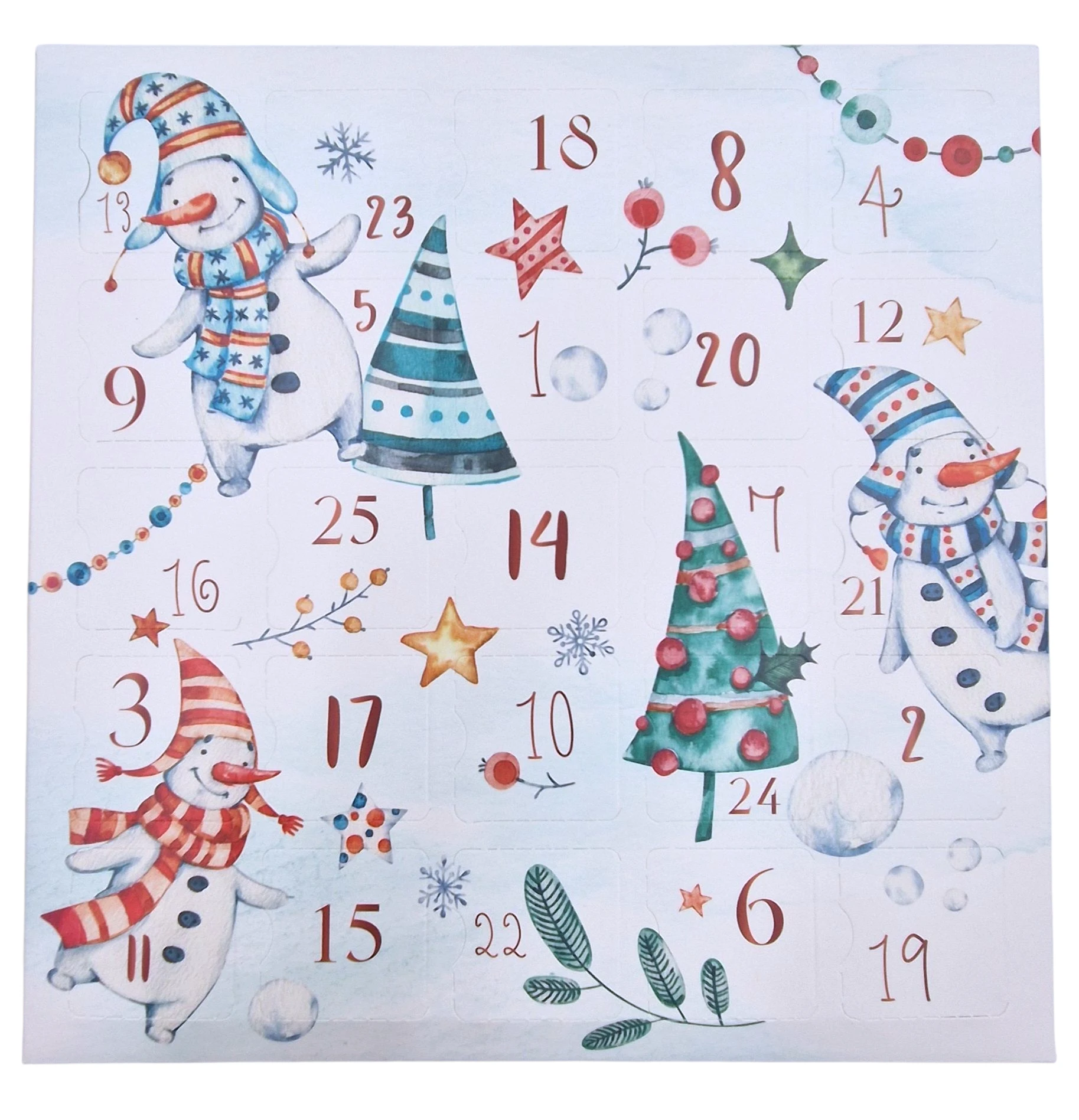 Kalendarz adwentowy z niespodziankami na każdy dzień umili odliczanie do Świąt Bożego Narodzenia. To wspaniała zabawa dla dzieci, ale również dla dorosłych. Opakowanie zdobi kolorowy, zimowy motyw pełen subtelnych detali, które wprowadzają do domu magię grudniowych wieczorów. Za 24 numerowanymi okienkami kryją się ręcznie wykonane mini czekoladki najwyższej jakości ze świątecznymi wzorami: choinki, bałwanka, Mikołaja, dzwoneczka itp. Czekoladki wykonane są z trzech rodzajów czekolady: biała, deserowa i mleczna z dodatkiem przyprawy do piernika. Każdy dzień to niespodzianka :)
