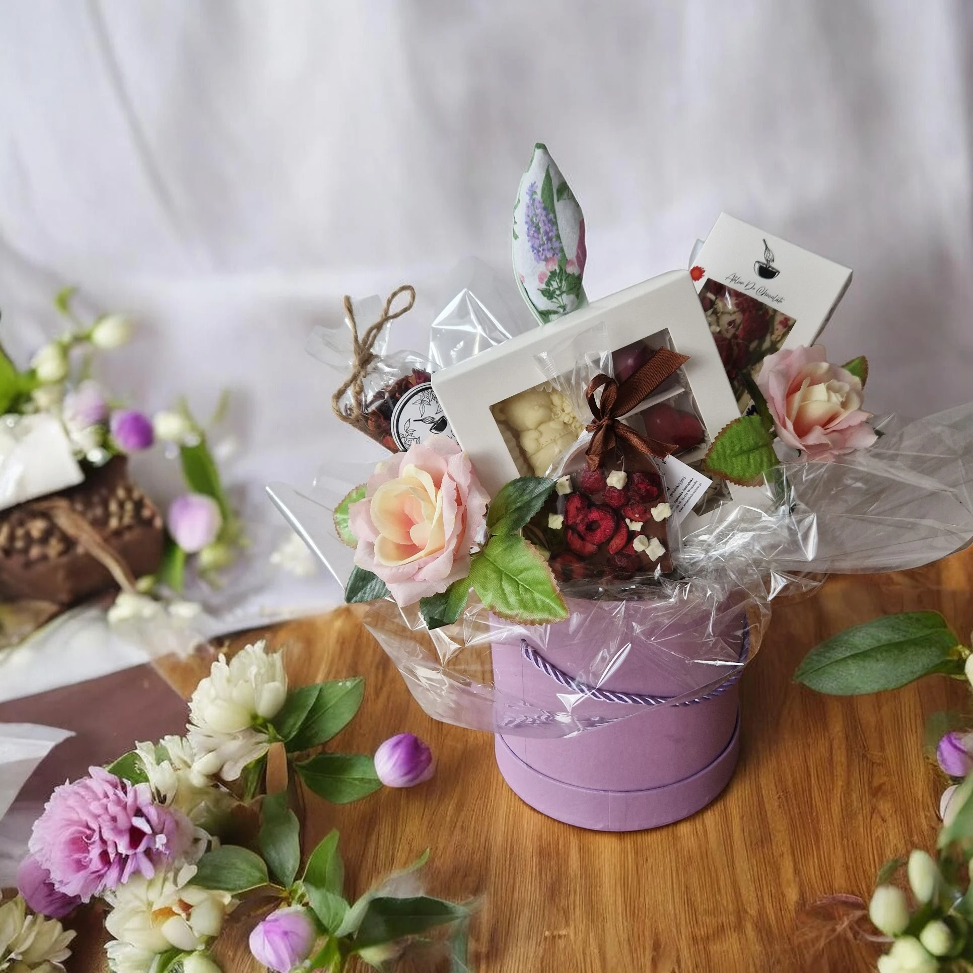 Flower Box z pralinkami z misiem